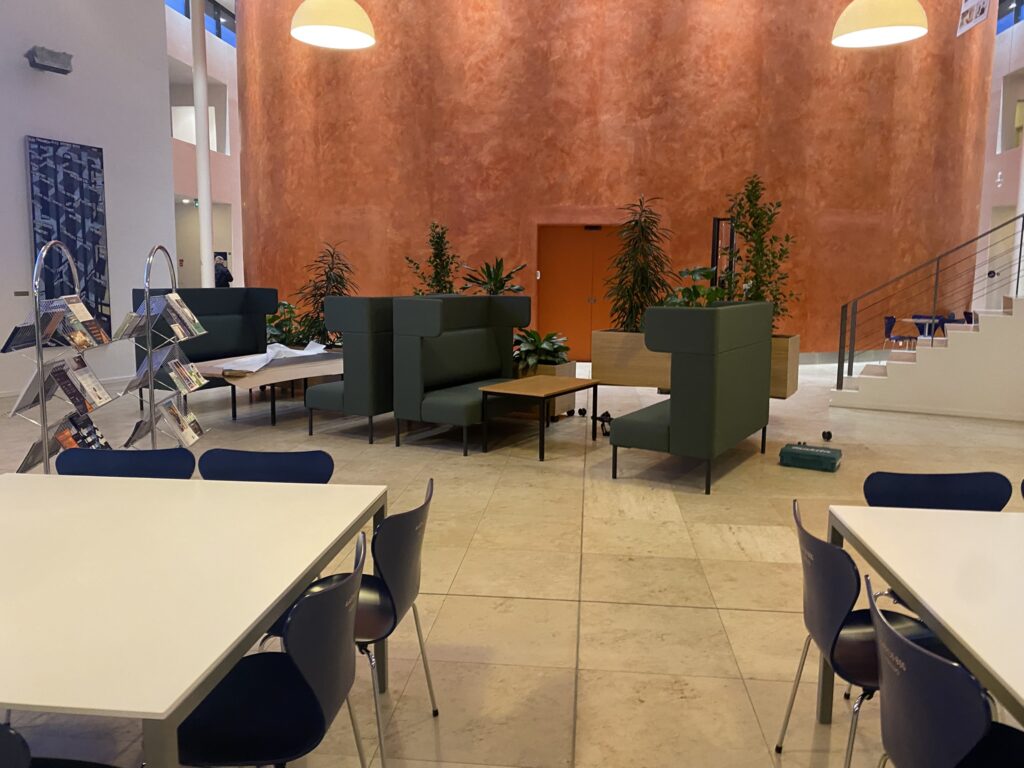 En kantine med flot udsigt blev indrettet med kantinemøbler i et nyt og indbydende design, der både understøtter daglig brug og skaber et behageligt miljø for medarbejderne. Derudover blev møderummene udstyret med nøje udvalgte mødeborde og stole i en æstetisk og funktionel stil.
